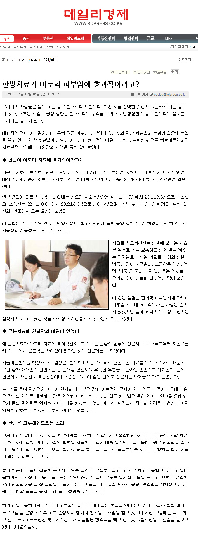한방치료가 아토피 피부염에 효과적이라고?
