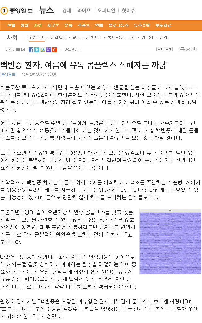백반증 환자, 여름에 유독 콤플렉스 심해지는 까닭