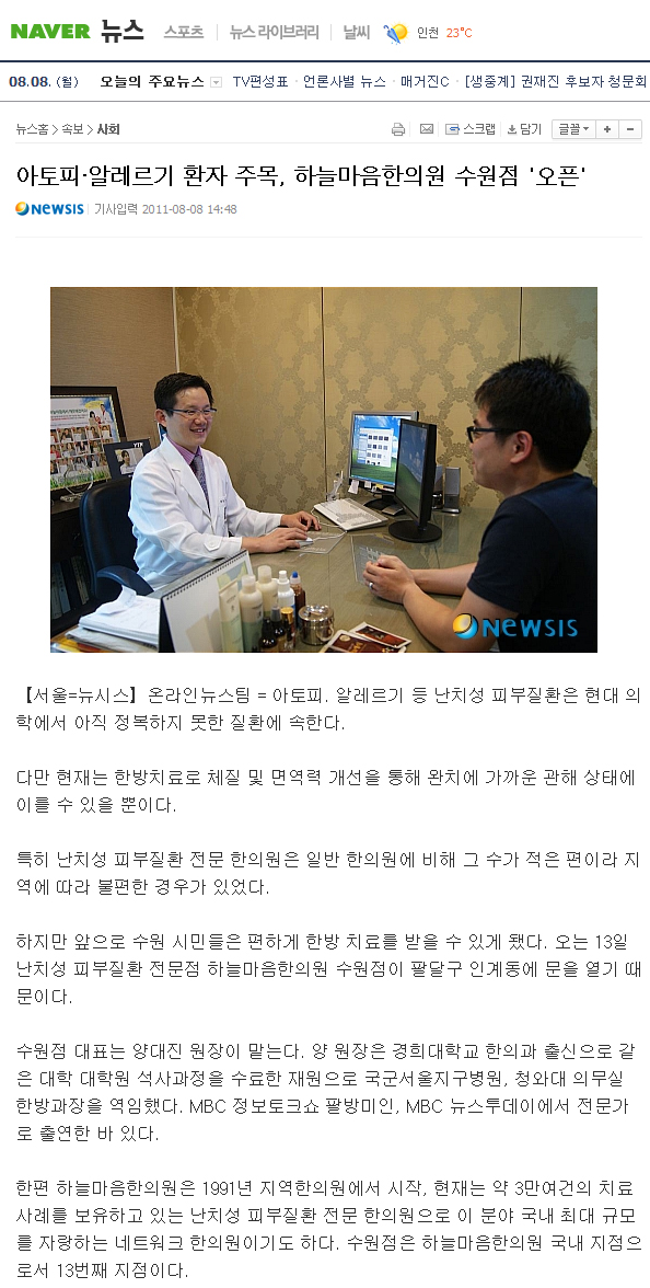 아토피·알레르기 환자 주목, 하늘마음한의원 수원점 '오픈'