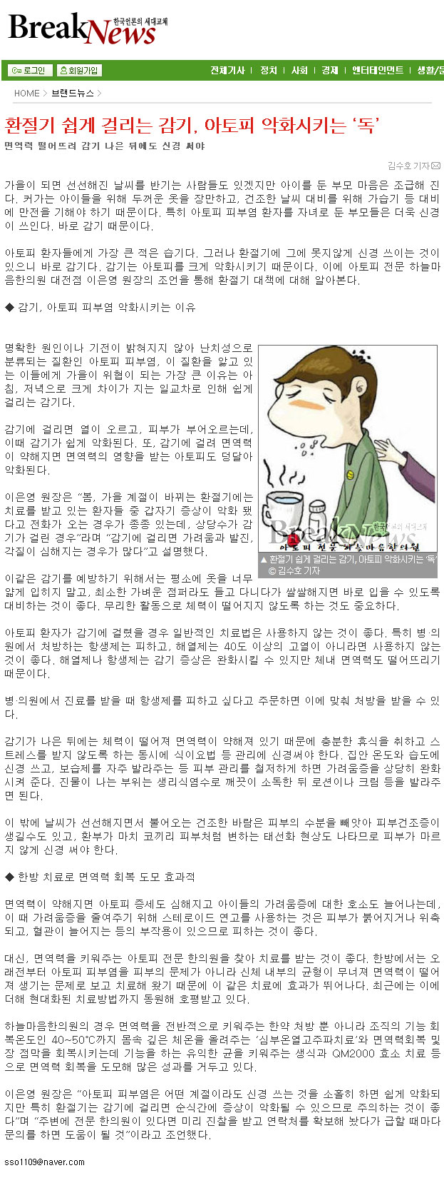 환절기 쉽게 걸리는 감기, 아토피 악화시키는 ‘독’