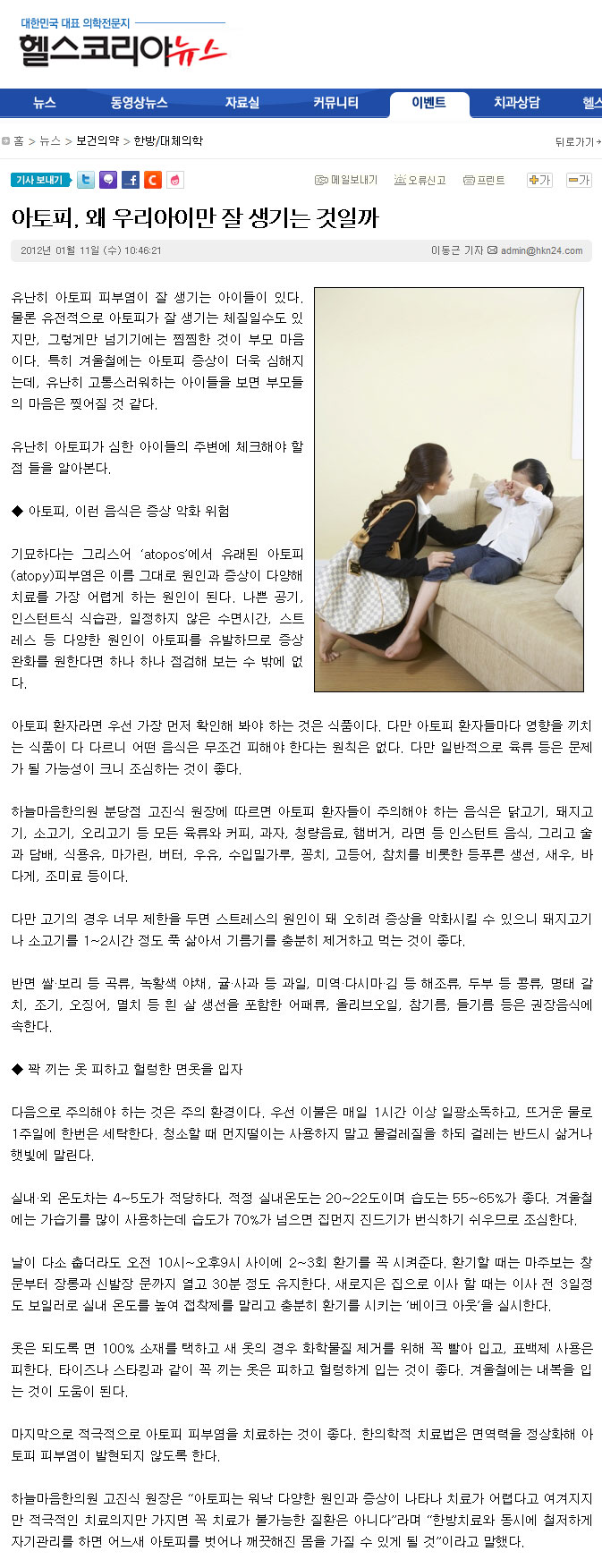 아토피, 왜 우리아이만 잘 생기는 것일까