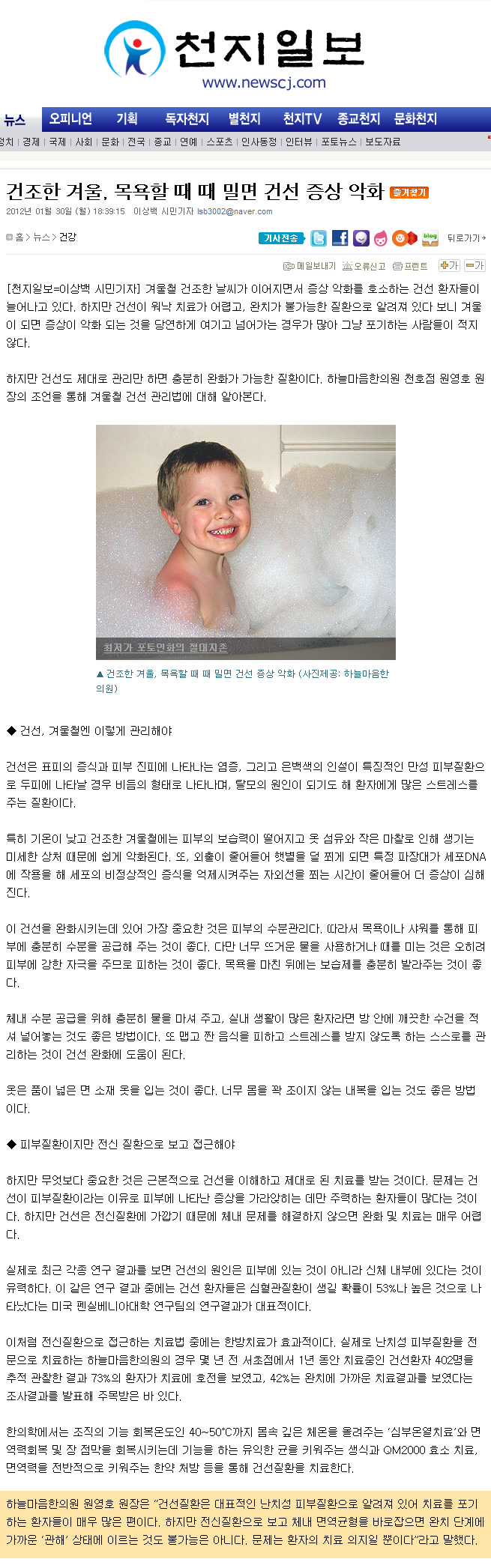 건조한 겨울, 목욕할 때 때 밀면 건선 증상 악화