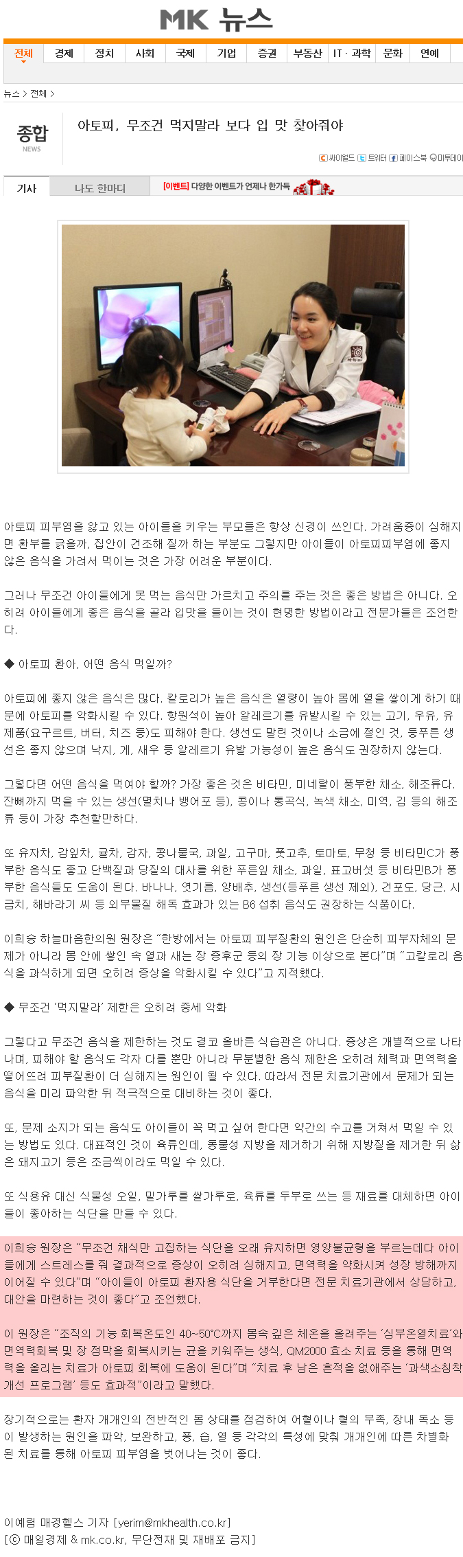 아토피, 무조건 먹지말라 보다 입 맛 찾아줘야
