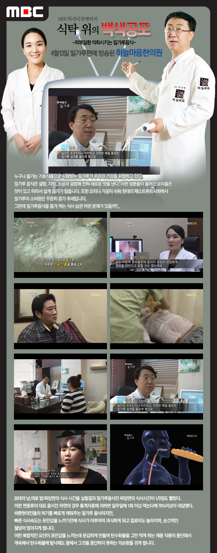 MBC특집 식탁위의 백색공포, KBS 뉴스9 하늘마음한의원 서초점,목동점,을지로점 방송!