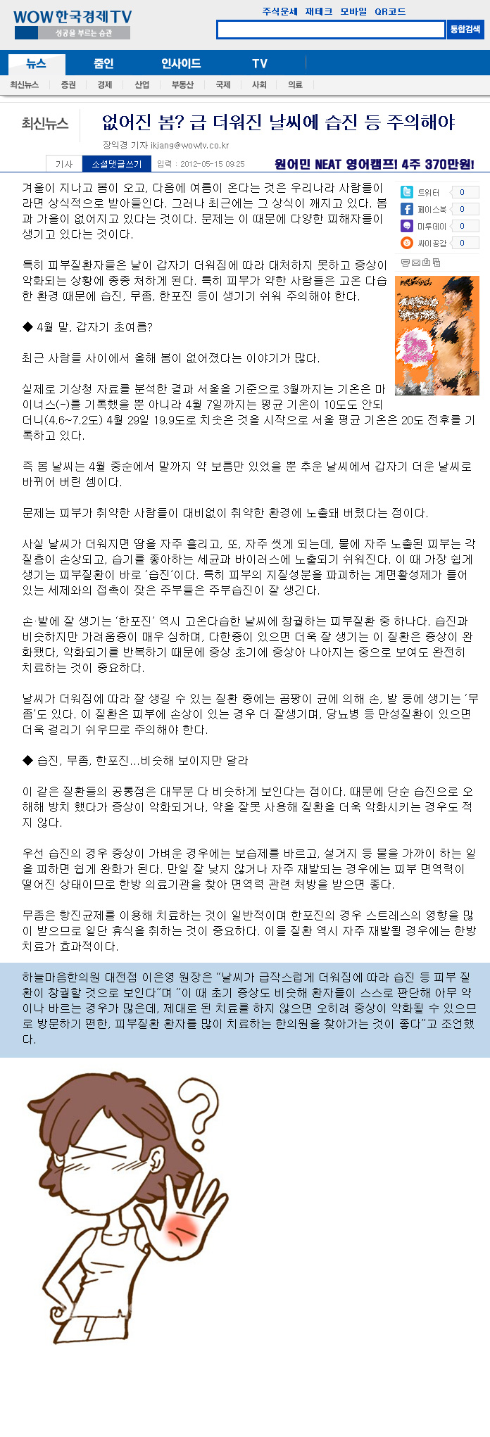 없어진 봄? 급 더워진 날씨에 습진 등 주의해야