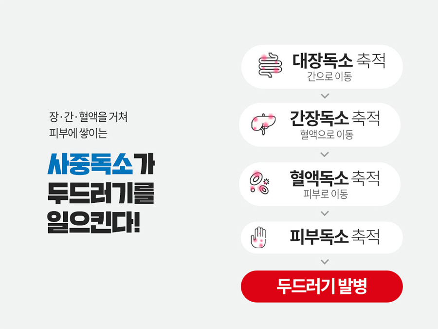 피부 독소는 면역 시스템에 이상을 일으켜 두드러기가 생기게 됩니다.
