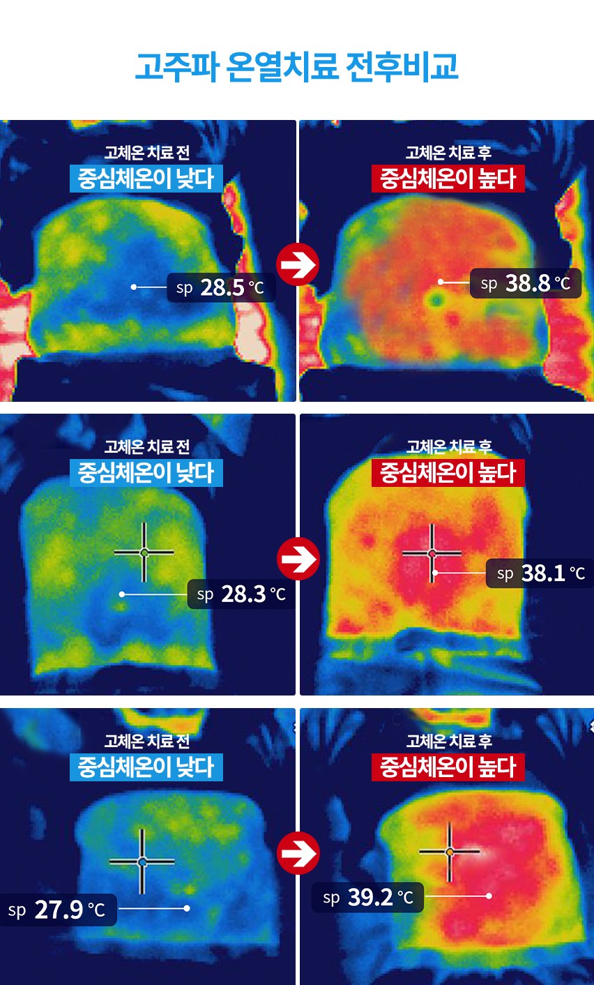 따라서, 고주파 온열 치료를 통해 복부의 중심 체온을 높여주면 장 점막으로 가는 혈류량이 증가하여 손상된 장 점막이 재생되어 장독소가 혈액으로 흘러 들어가지 않게 되므로 피부 독소가 생기지 않아 두드러기 치료에 도움이 됩니다.