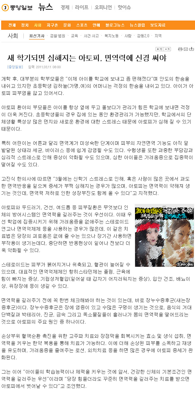 새 학기되면 심해지는 아토피, 면역력에 신경 써야