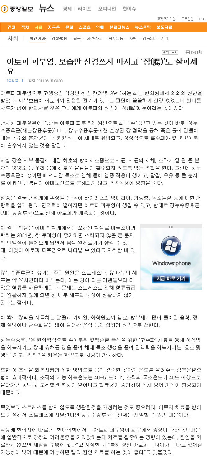 아토피 피부염, 보습만 신경쓰지 마시고 ‘장(腸)’도 살피세요