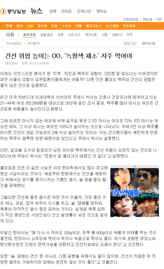 건선 위험 높이는 OO, ‘녹황색 채소’ 자주 먹어야