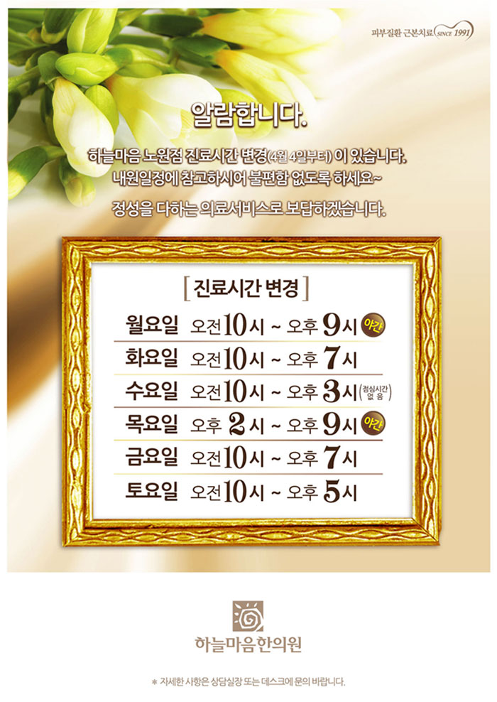 [4/4~]노원점 진료시간변경