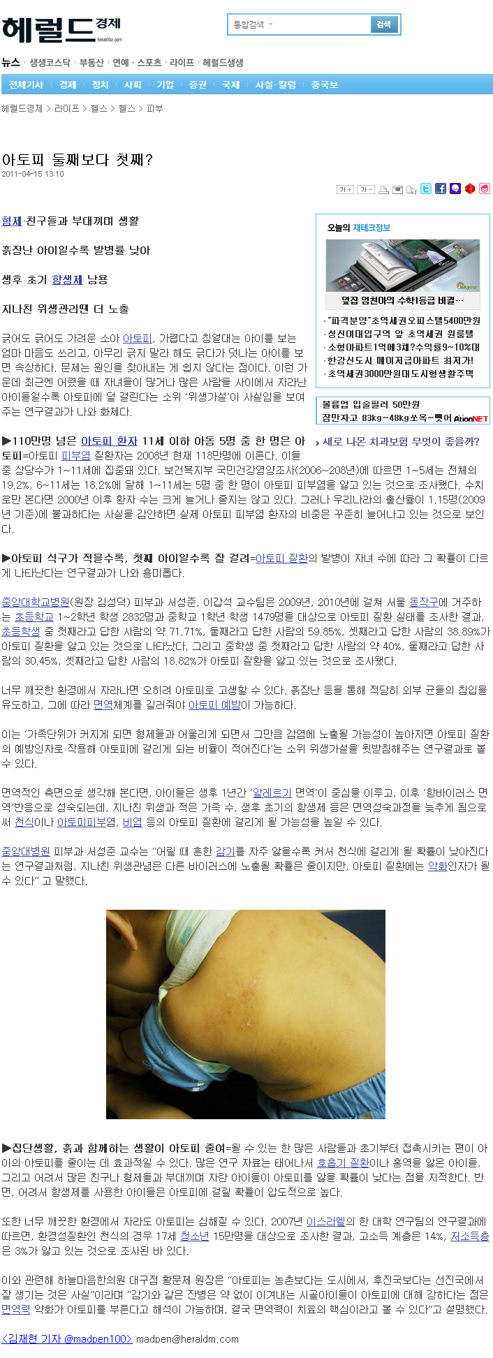 아토피 둘째보다 첫째?