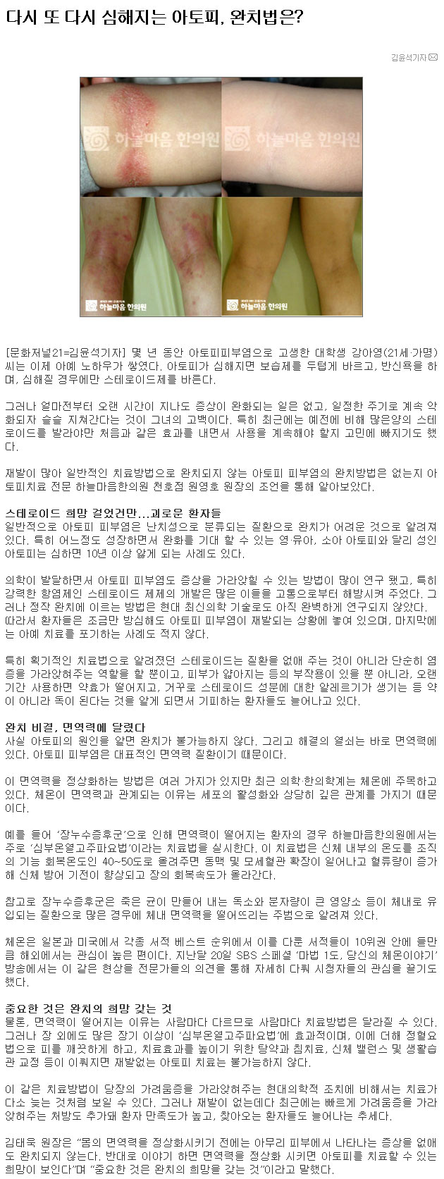 다시 또 다시 심해지는 아토피, 완치법은?