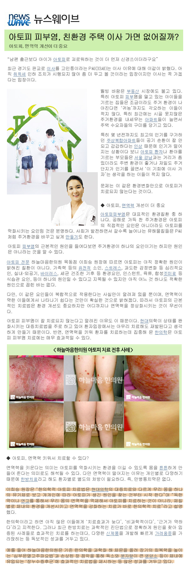 아토피 피부염, 친환경 주택 이사 가면 없어질까?