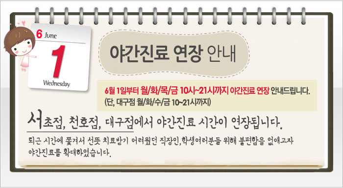 6/1 야간진료 연장 안내(서초/천호/대구점)