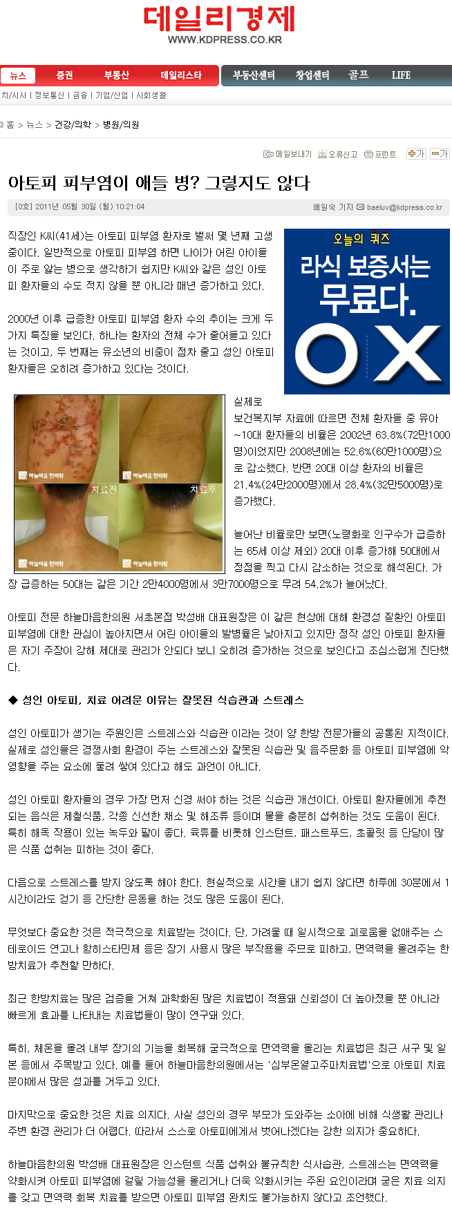 아토피 피부염이 애들 병? 그렇지도 않다