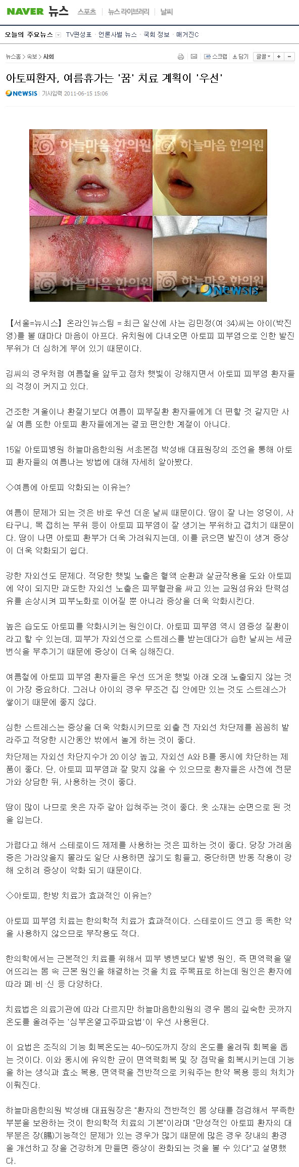 아토피환자, 여름휴가는 '꿈' 치료 계획이 '우선'