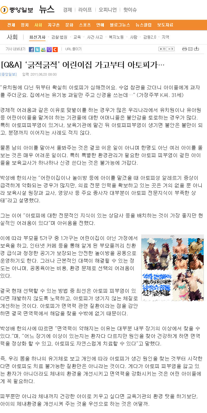 ‘긁적긁적’ 어린이집 가고부터 아토피가…