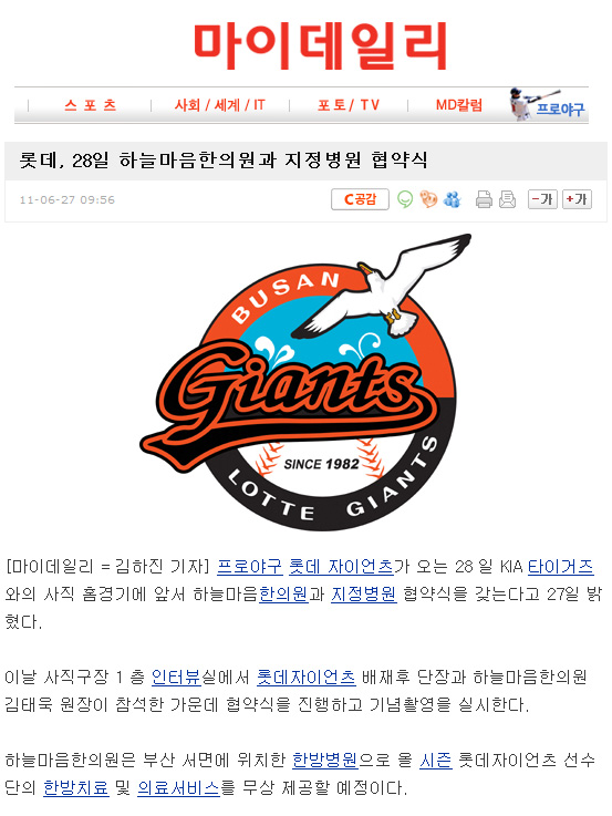 롯데, 28일 하늘마음한의원과 지정병원 협약식