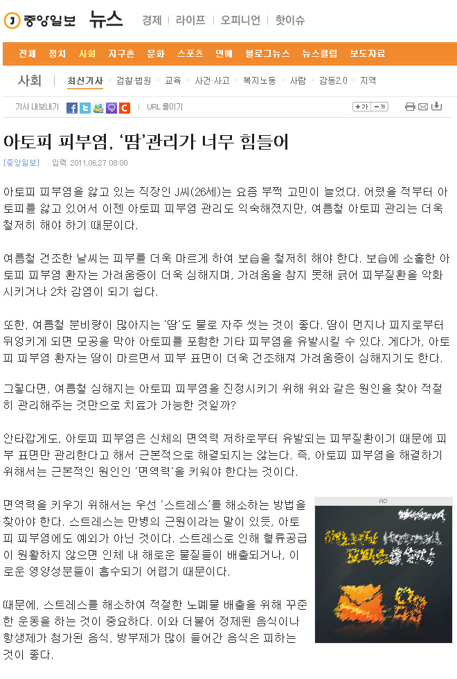 아토피 피부염, ‘땀’관리가 너무 힘들어