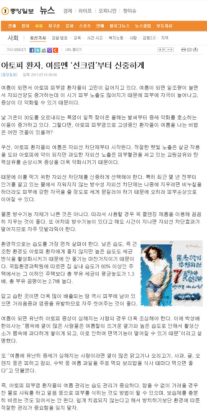 아토피 환자, 여름엔 ‘선크림’부터 신중하게