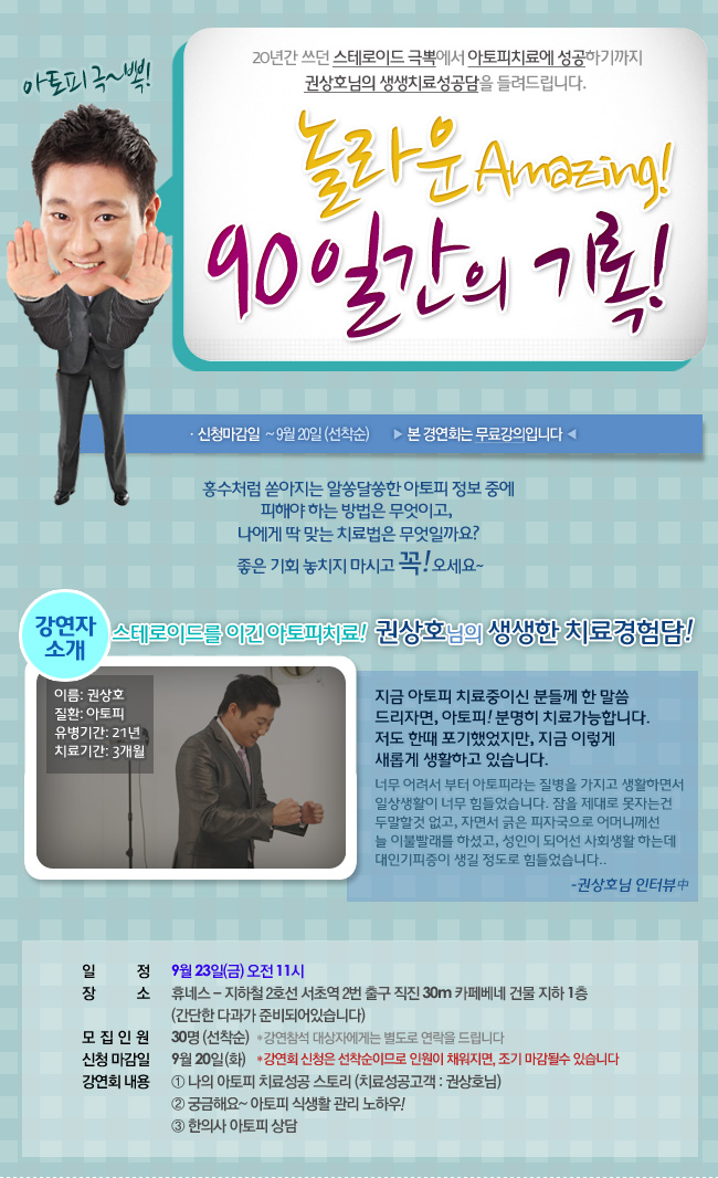 [아토피 무료강연회] 놀라운 90일간의 기록!-마감