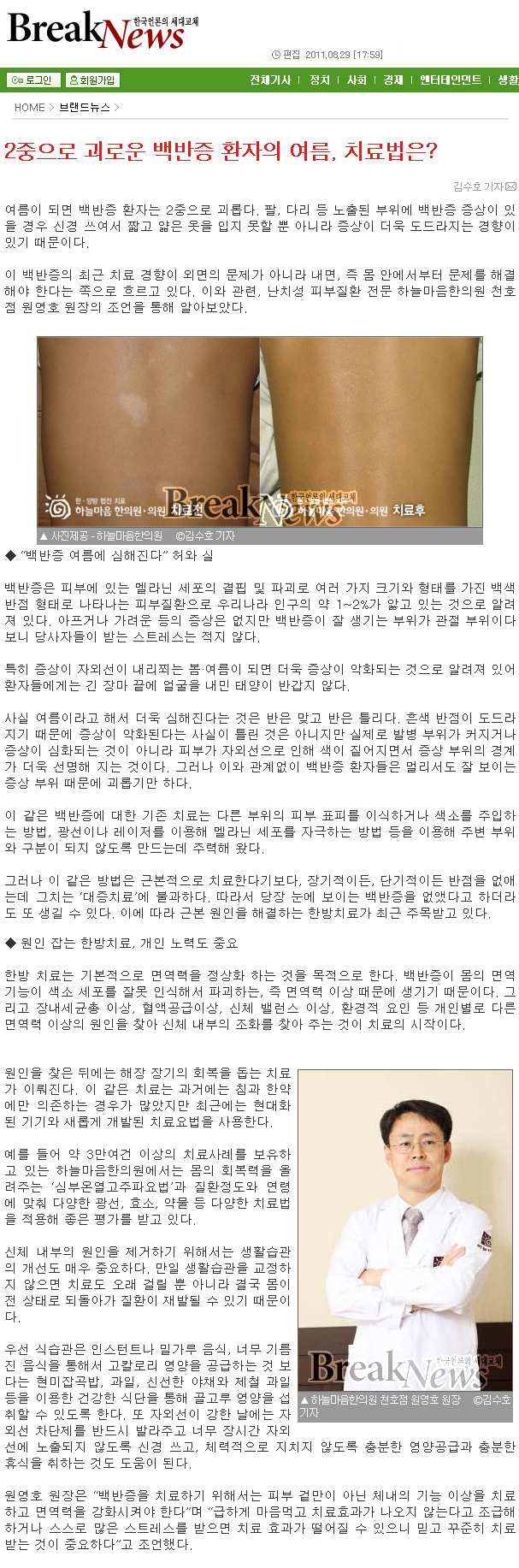 2중으로 괴로운 백반증 환자의 여름, 치료법은?
