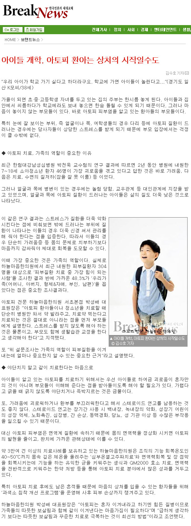 아이들 개학, 아토피 환아는 상처의 시작일수도