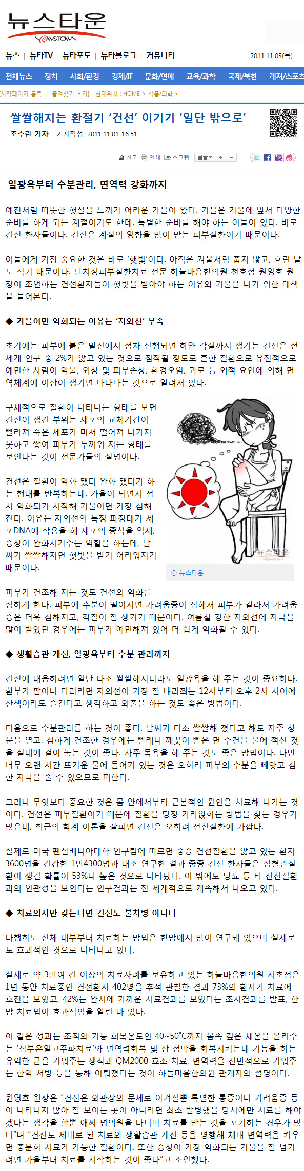 쌀쌀해지는 환절기 ‘건선’ 이기기 '일단 밖으로'