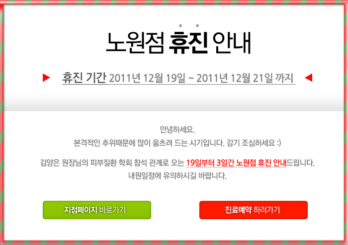 12/19~21일 노원점 휴진일정안내드립니다 :)