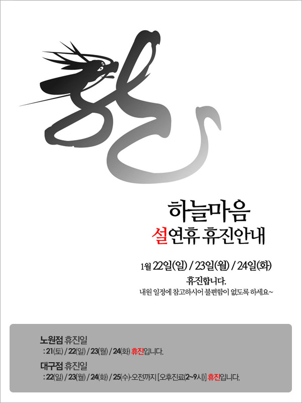 설연휴 휴진일 안내입니다 - 새해복 많이 받으세요 :)