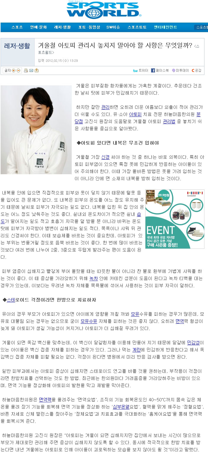 겨울철 아토피 관리시 놓치지 말아야 할 사항은 무엇일까?