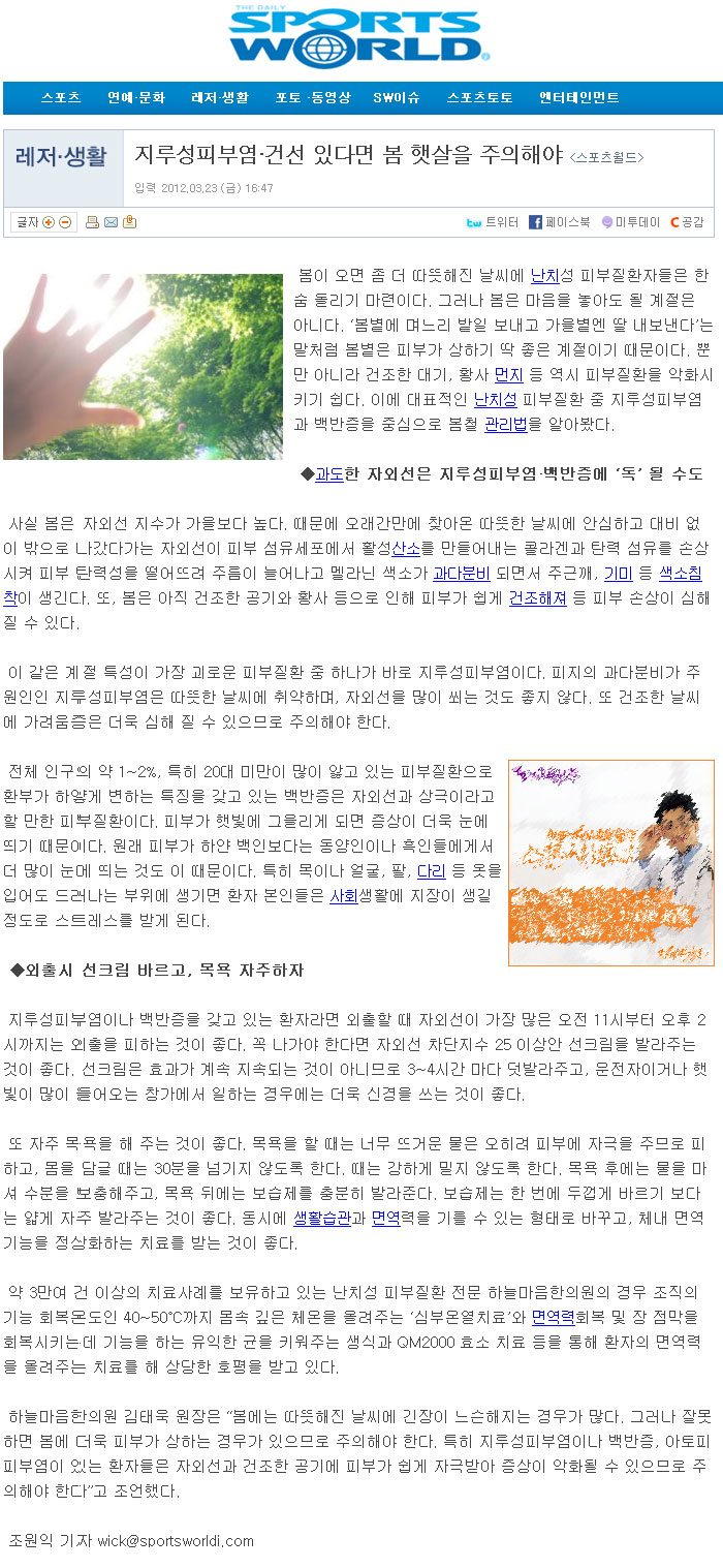 지루성피부염·건선 있다면 봄 햇살을 주의해야